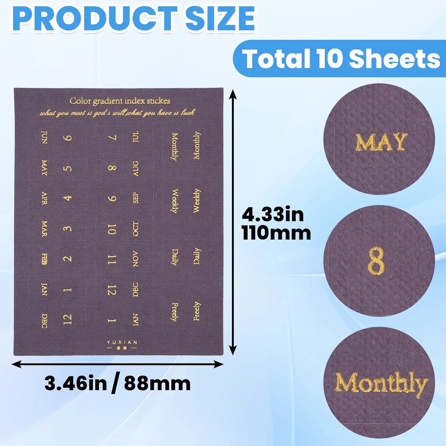 10 sheets self-adhesive monthly plan tear-off calendar stickers, including digital months (1-12), note plan index labels