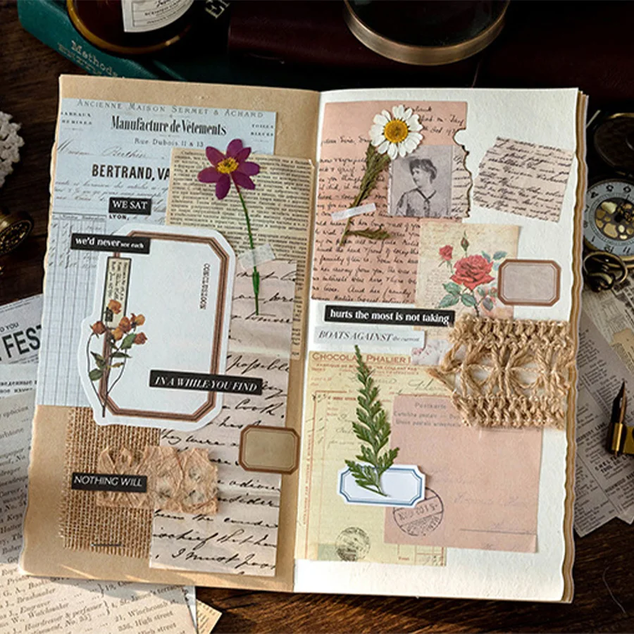 100pcs/pack Vintage Scrapbooking Light Paper Kit DIY Junk Journal Collage Stationery Background Decor Materials Paper