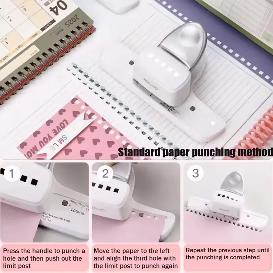 1. Square Hole Feature This hole punch creates clean, square holes, ideal for loose-leaf stationery or DIY diary binding projects.