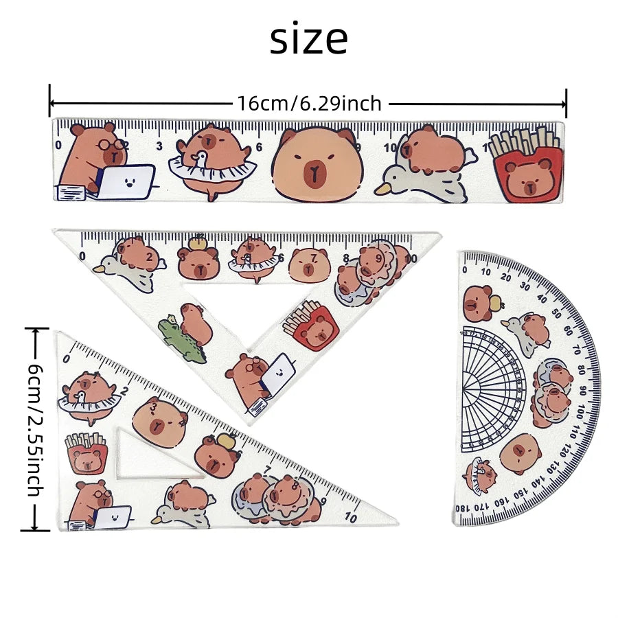 4PCS Creative Acrylic Capybara Set of Rulers Drawing Tools Cute Cartoon Soft Ruler Set Office Supplies Set Square