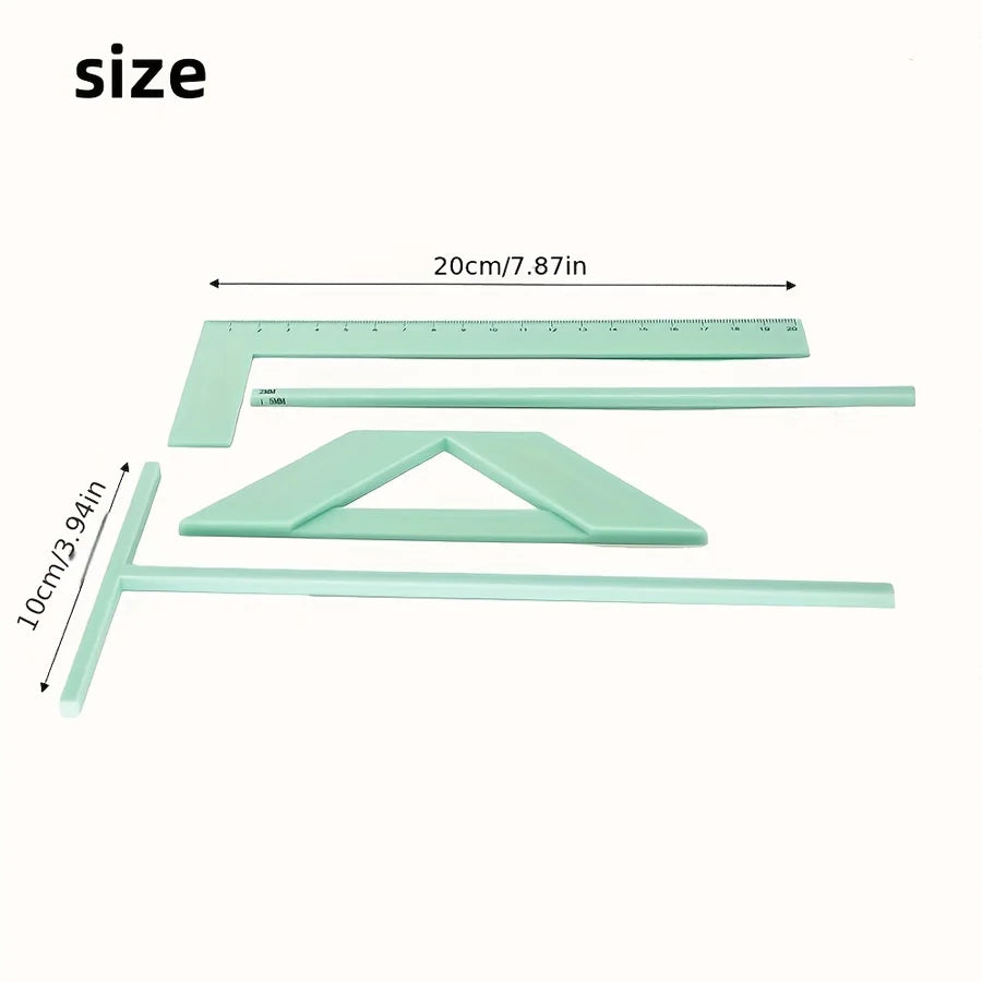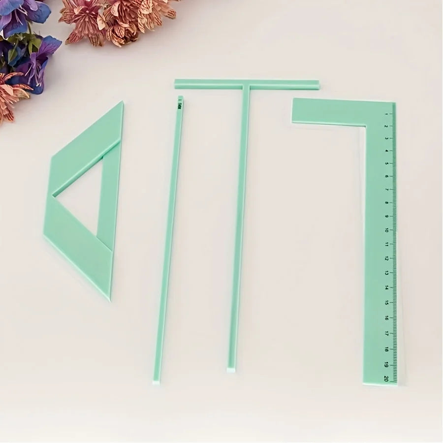 4pcs/set binding ruler set, L-ruler, T-ruler, spacing guide, cut corners square set, for scrapbook album making